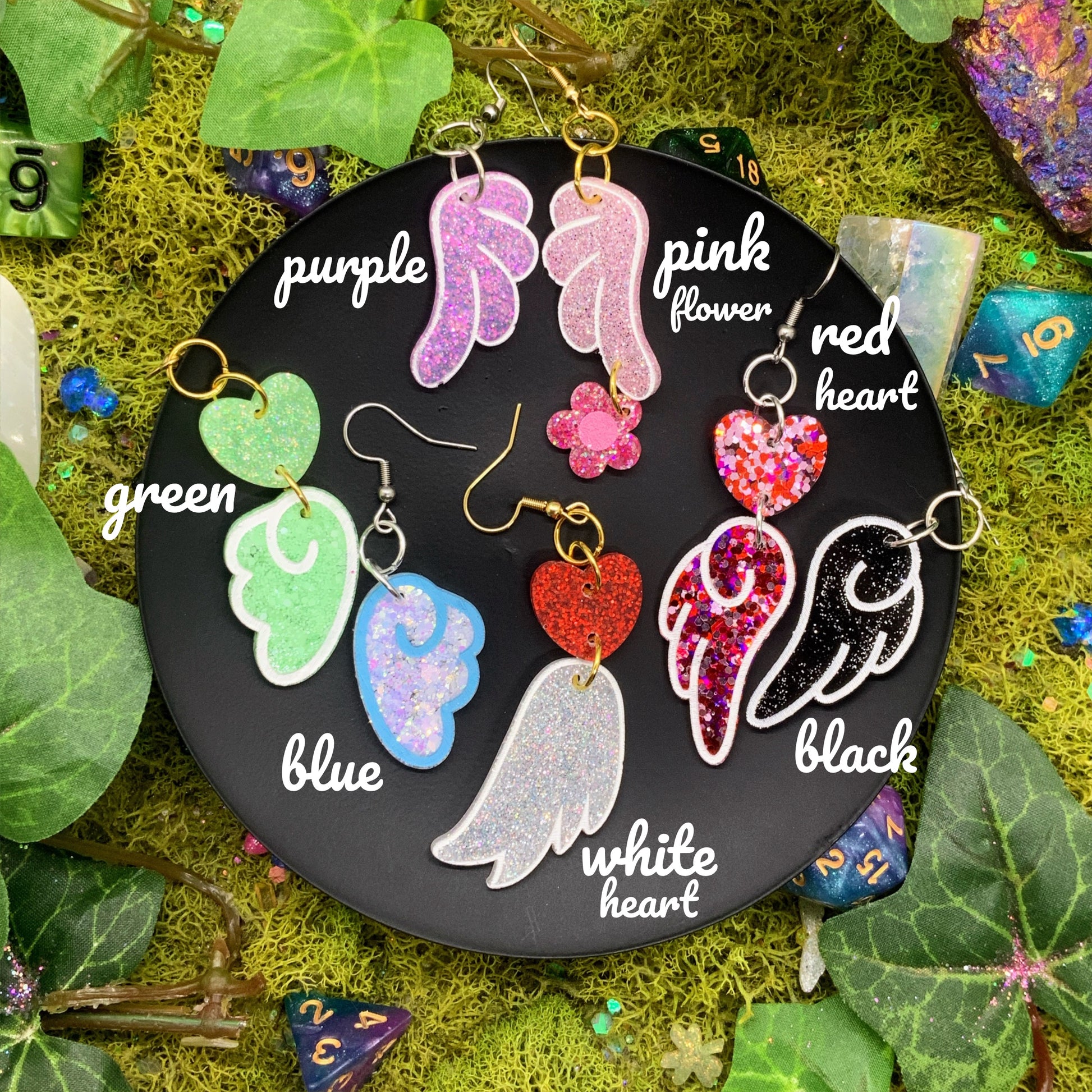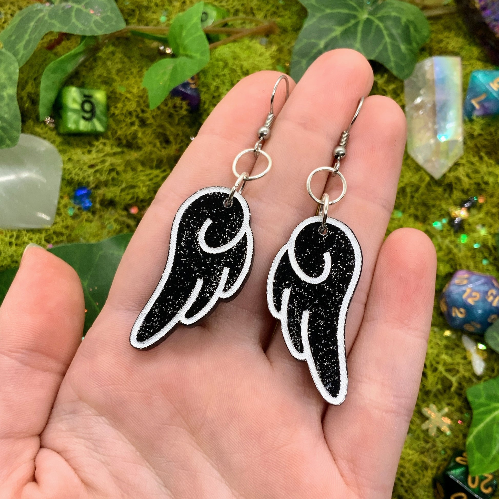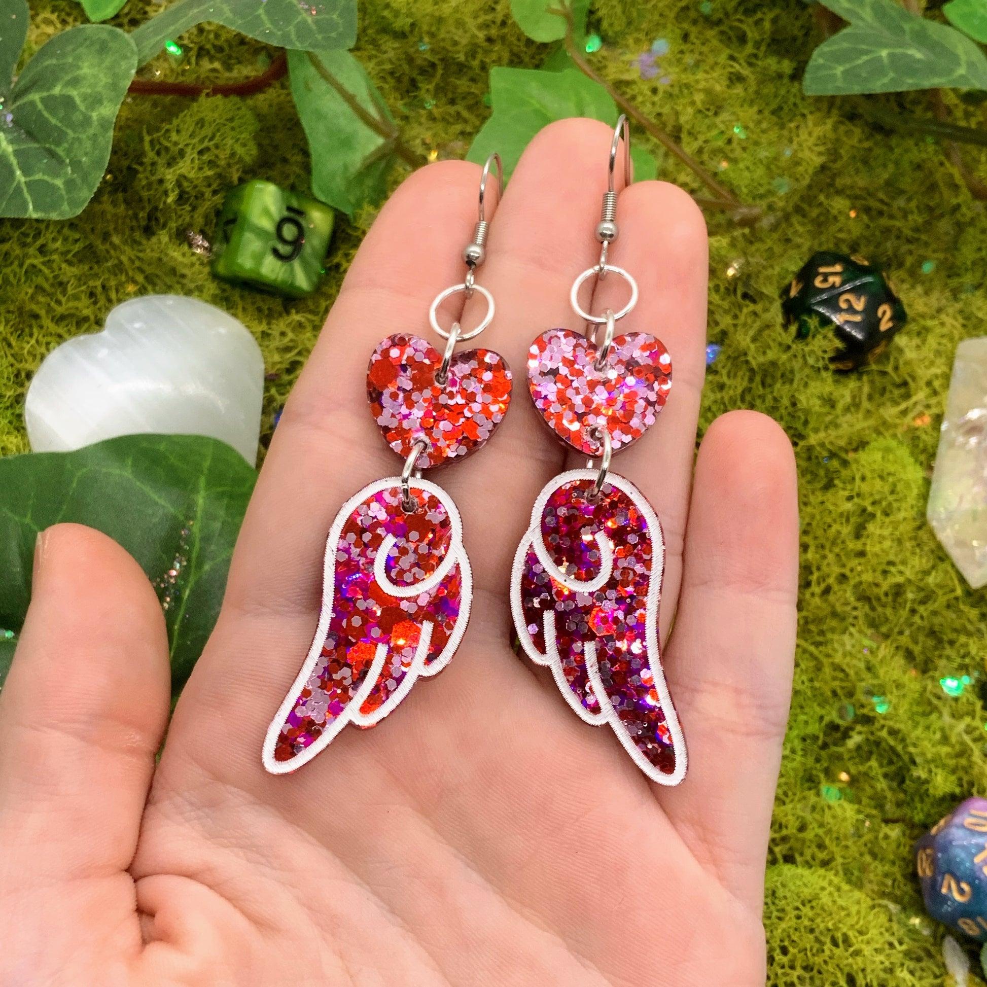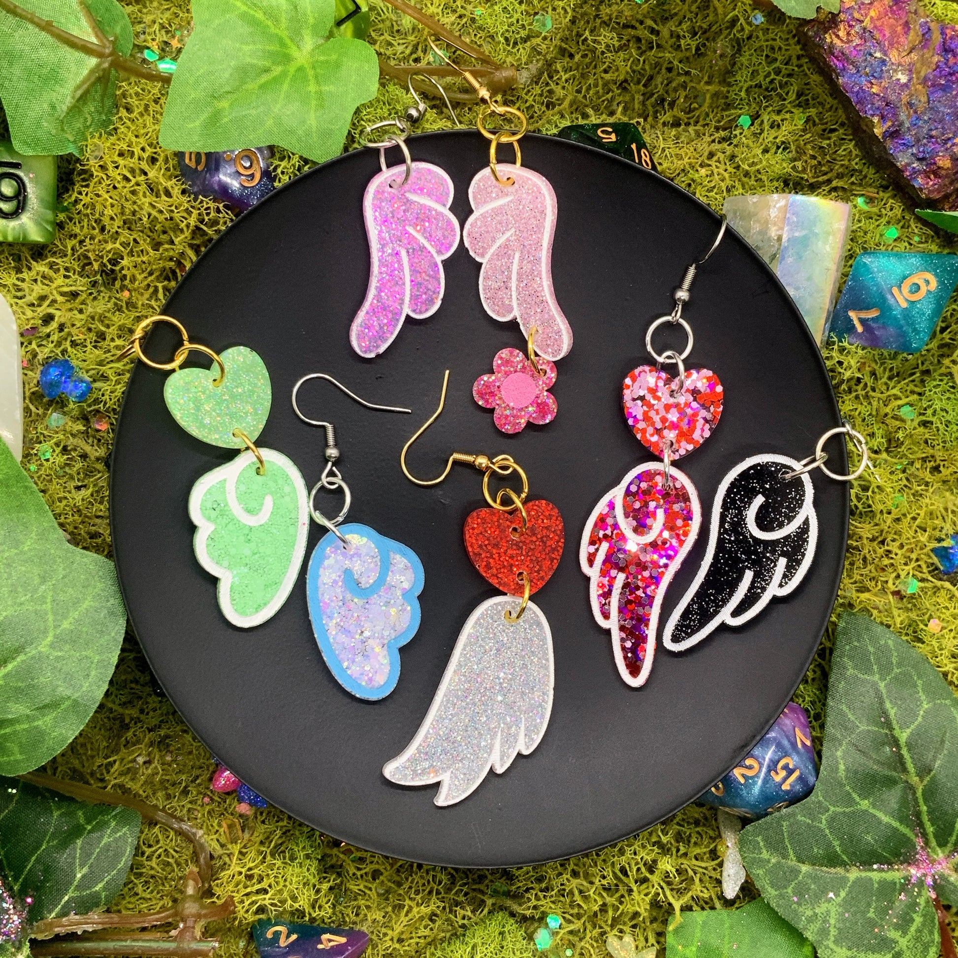 small sized lightweight earrings: soft angel wings with tiny wing accent charms