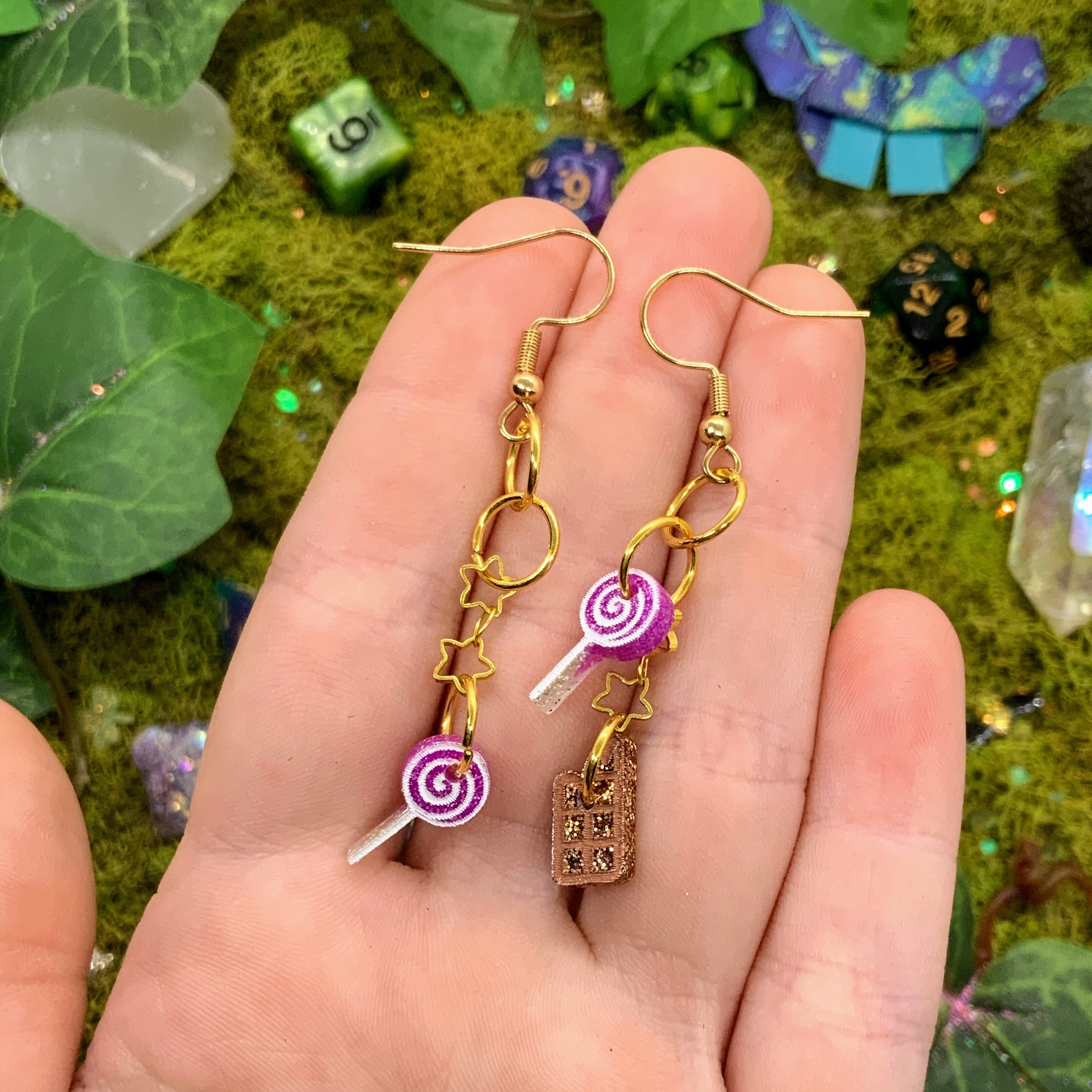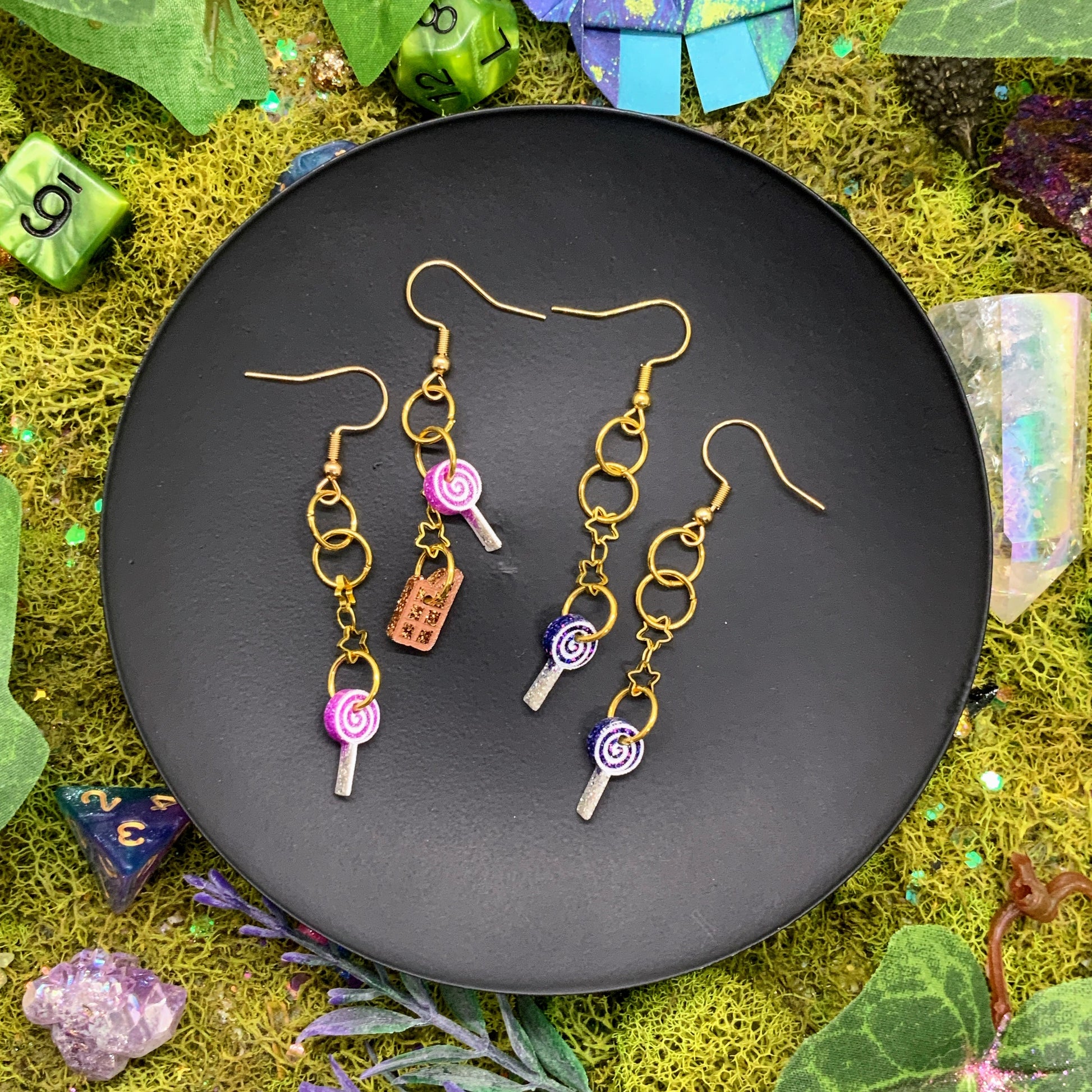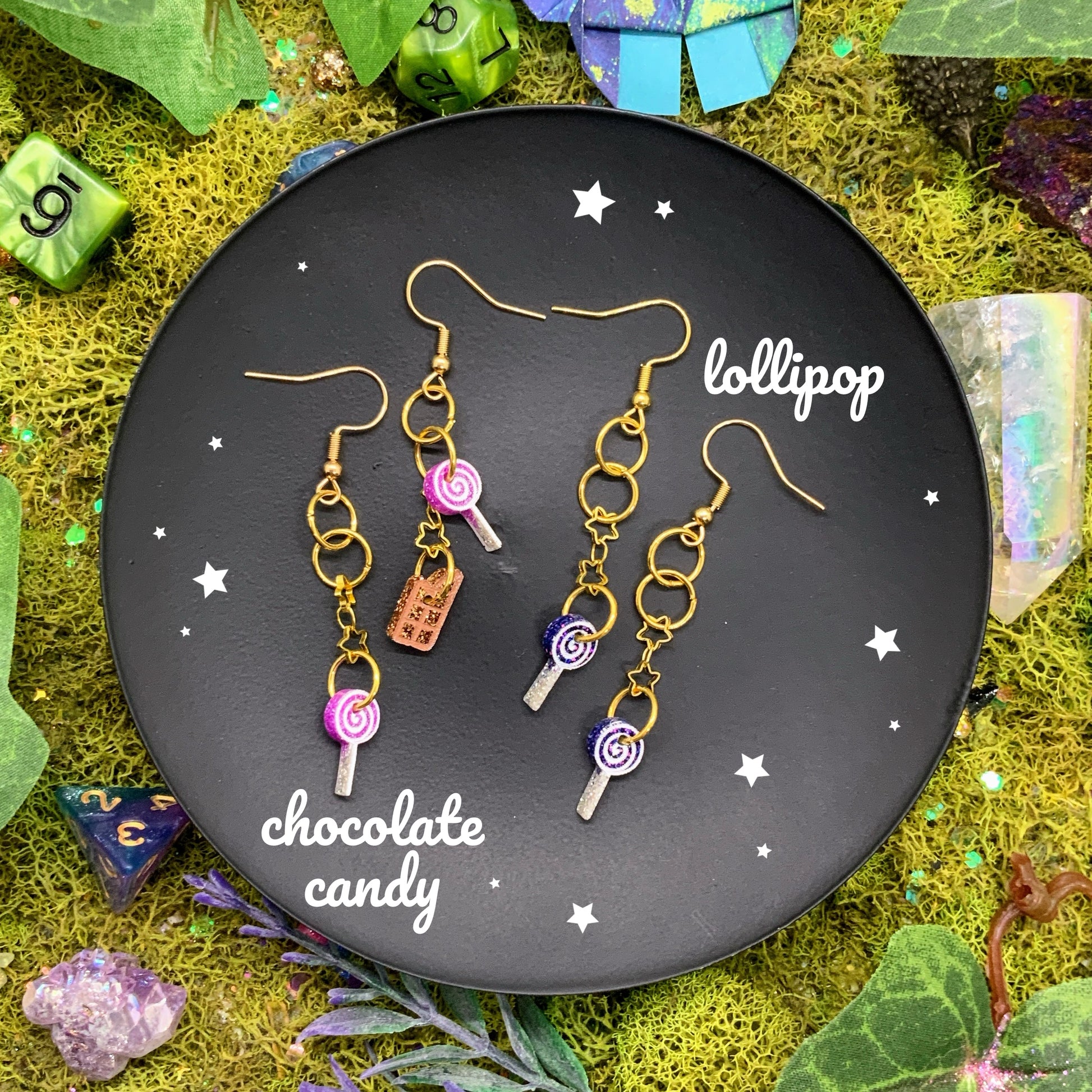 mini sized dangle earrings: tiny candy charms with sweet starry chain