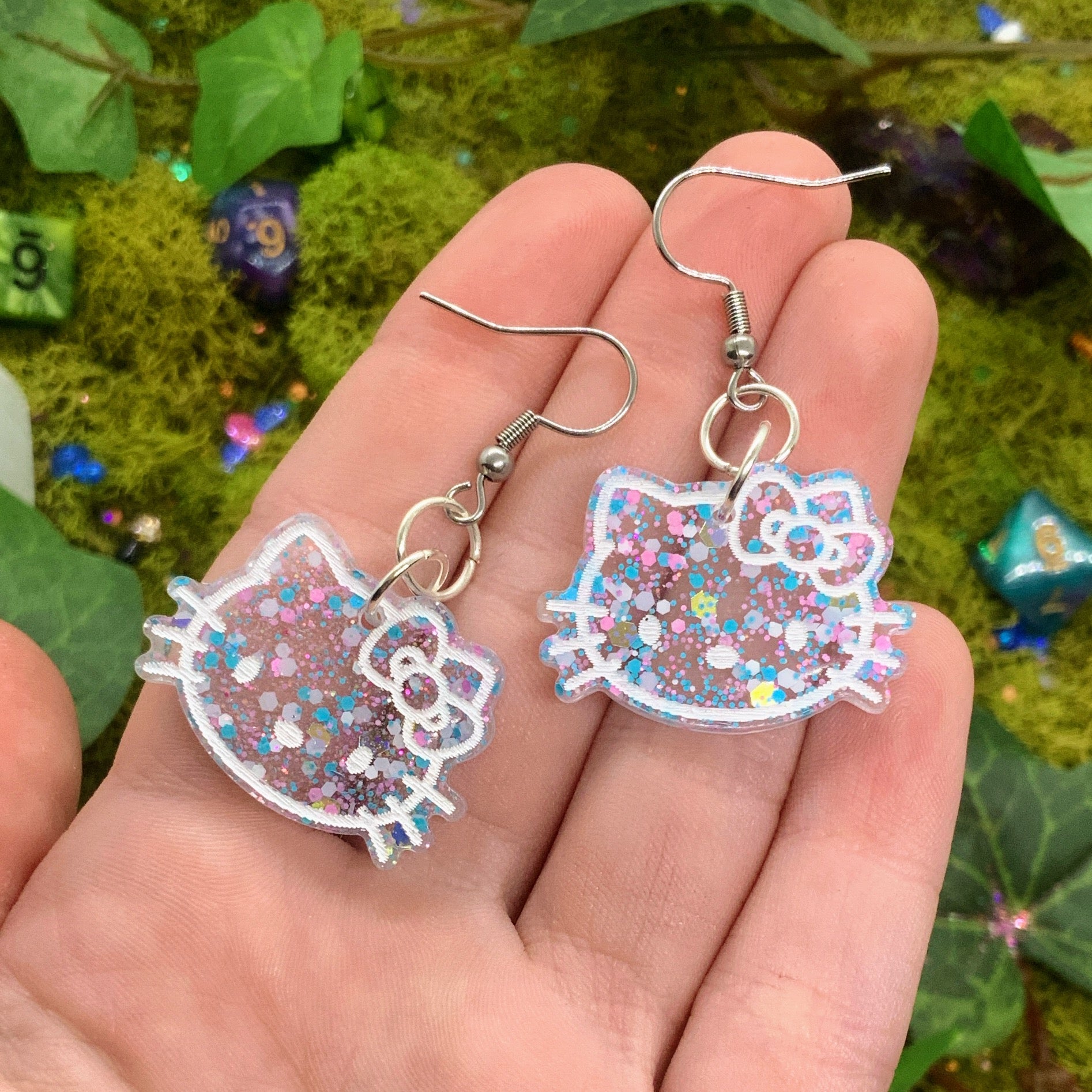 handmade - each pair is one-of-a-kind, i glitter all the details! so not all pieces will look exactly the same as the picture, glitter can look different irl vs on camera (aka more sparkly, different colors, etc)