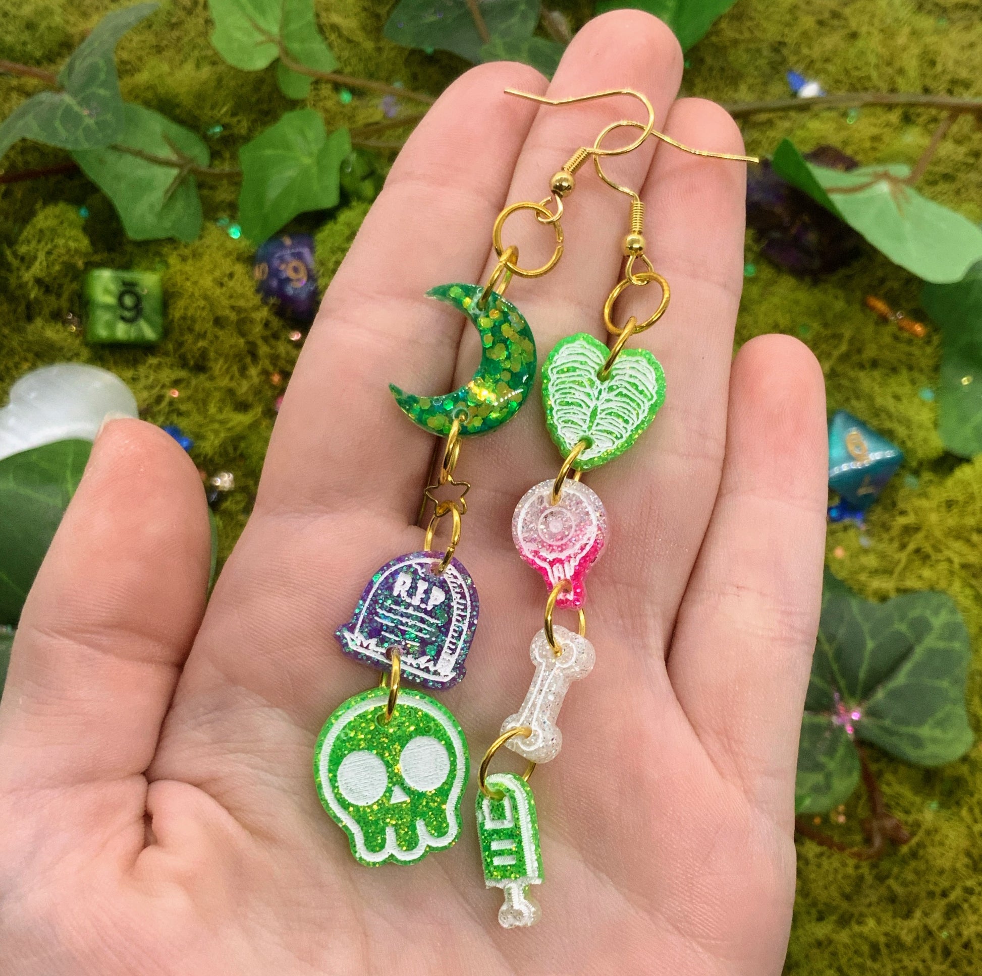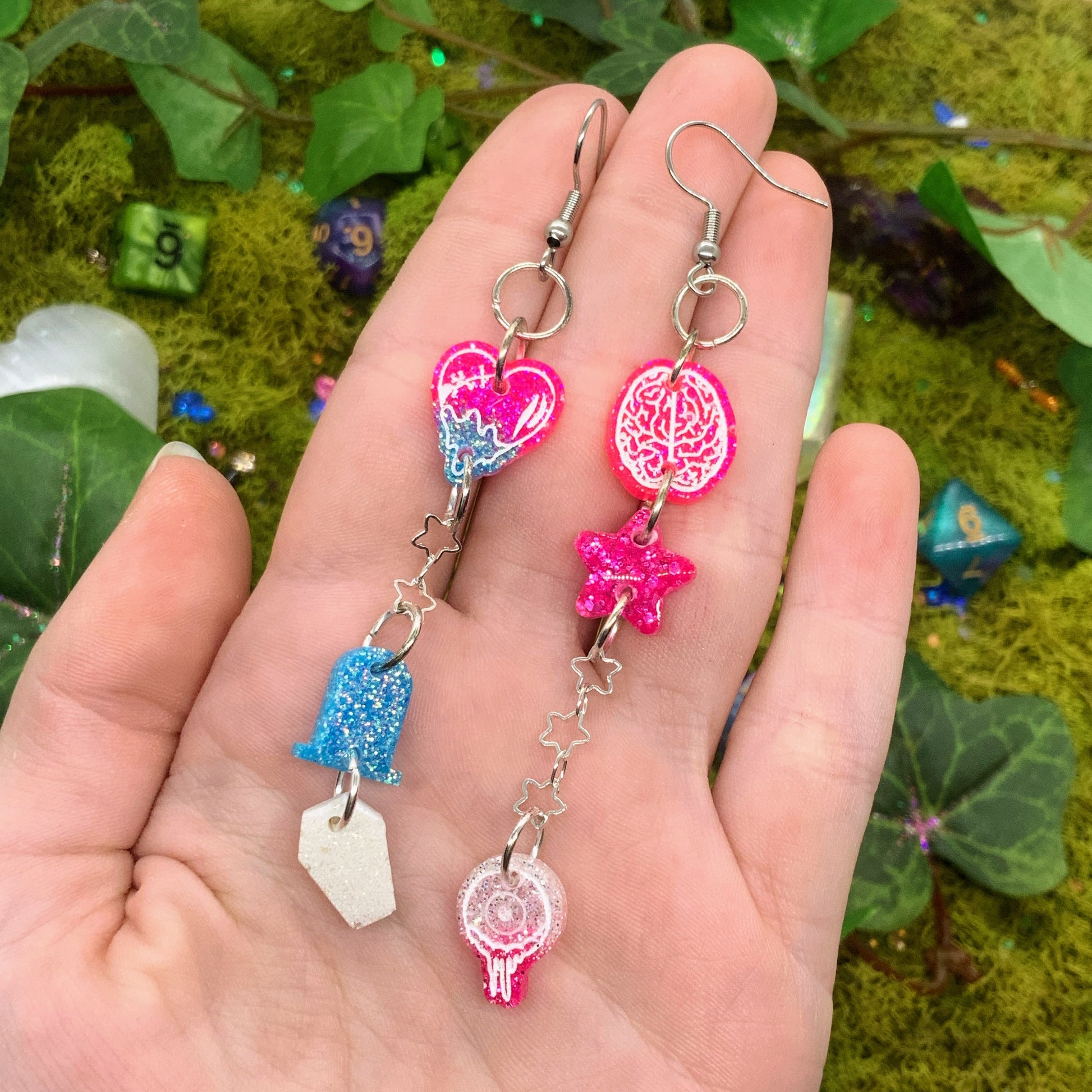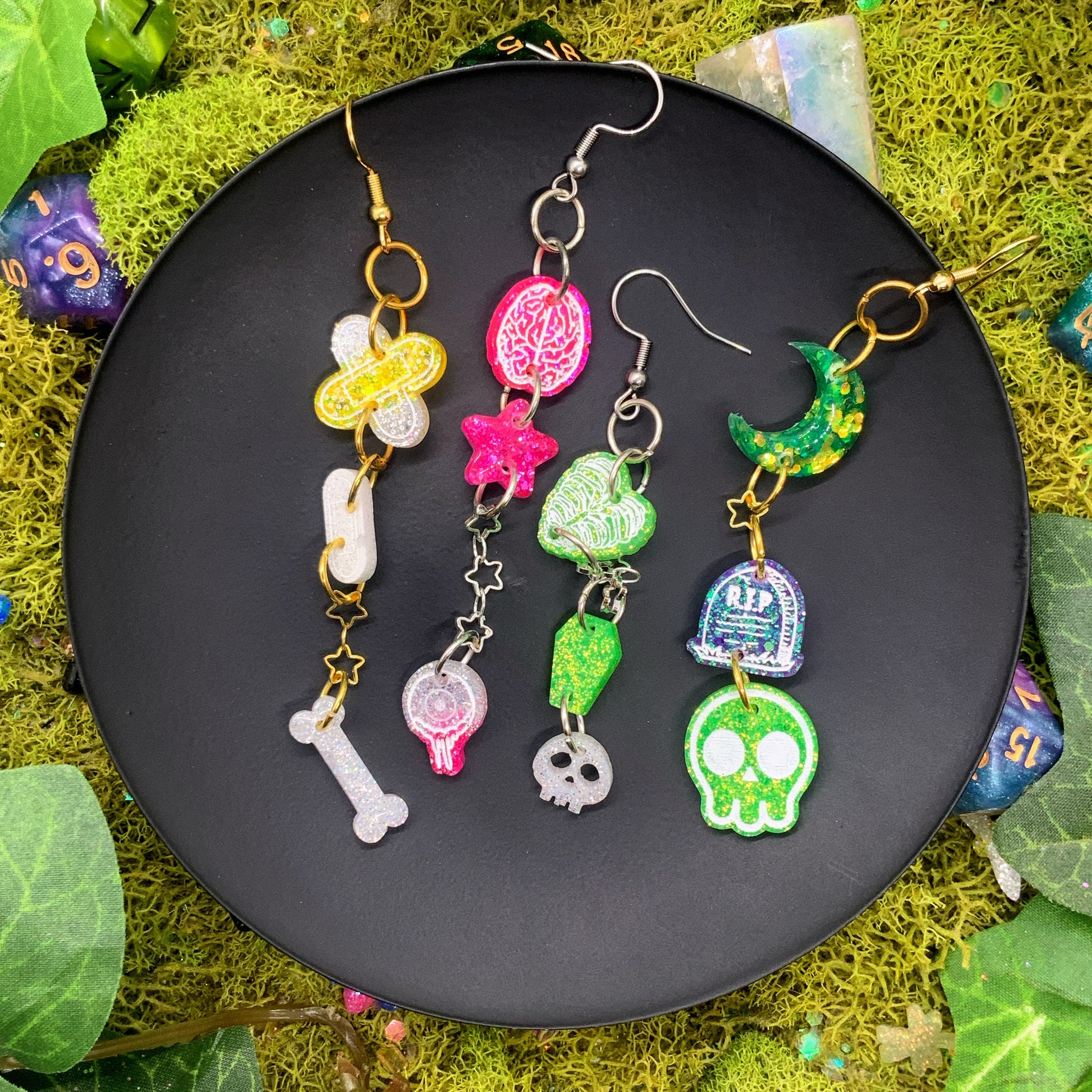 small sized lightweight earrings: spooky cute charms on super cute star chain
