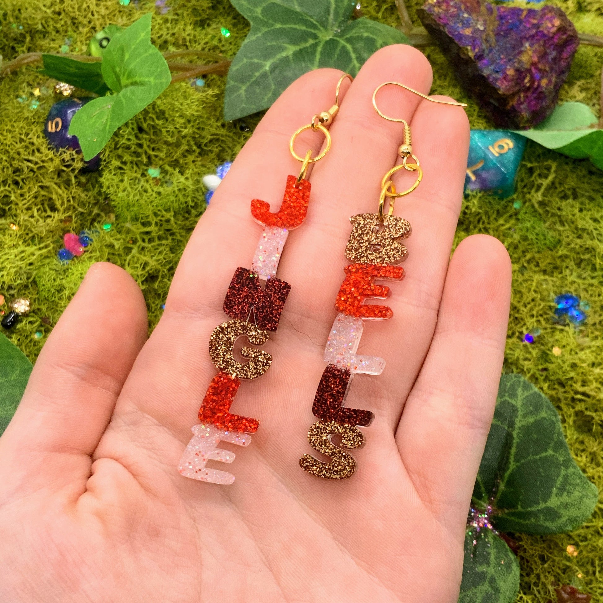 handmade - each pair is one-of-a-kind, i glitter all the details! so not all pieces will look exactly the same as the picture, glitter can look different irl vs on camera (aka more sparkly, different colors, etc)