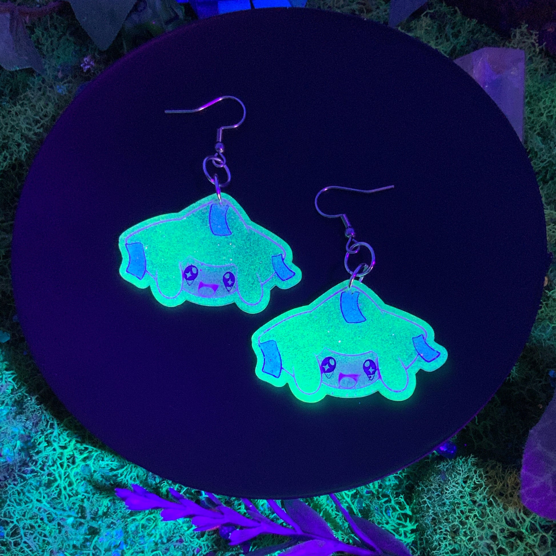 small sized lightweight earrings: shiny version is also UV reactive !! the mythical pokemon !