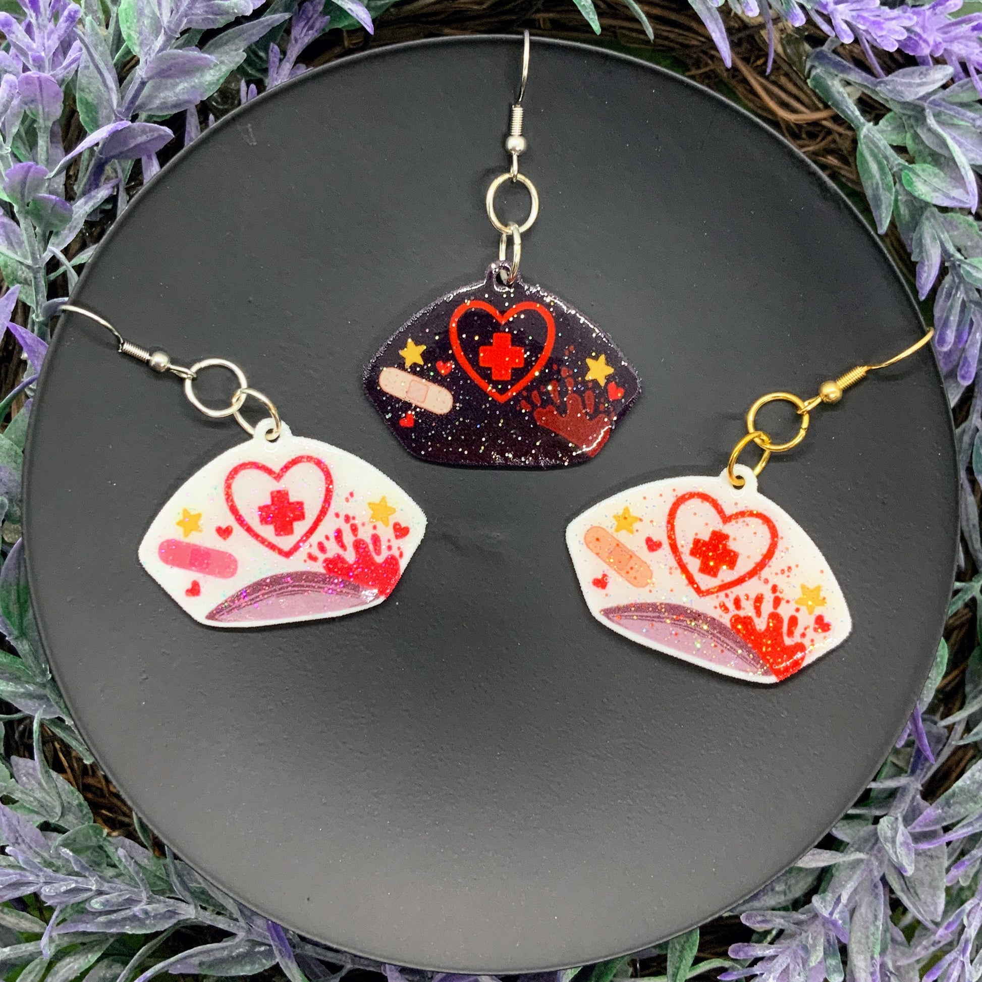 handmade - each piece is the same artwork, but handmade with uv resin and glitter, so there may be slight differences in each pair !!