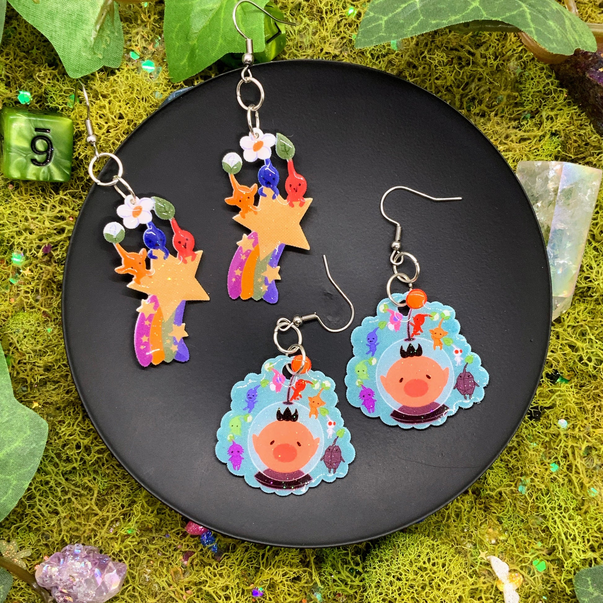 handmade - each piece is the same artwork, but handmade with uv resin and glitter, so there may be slight differences in each pair !!