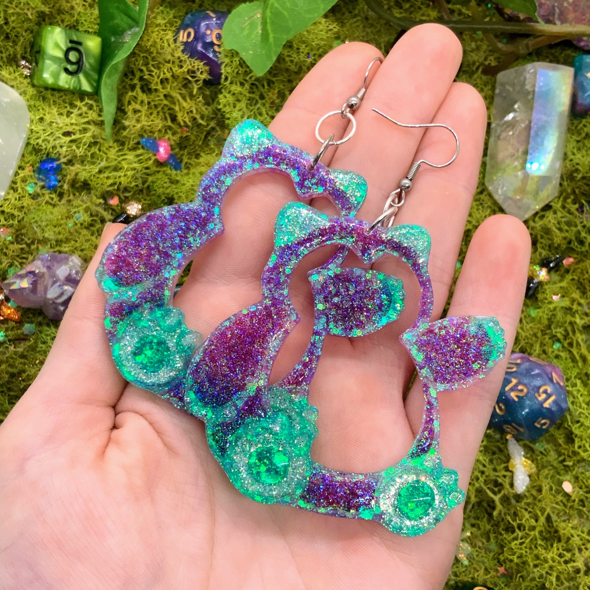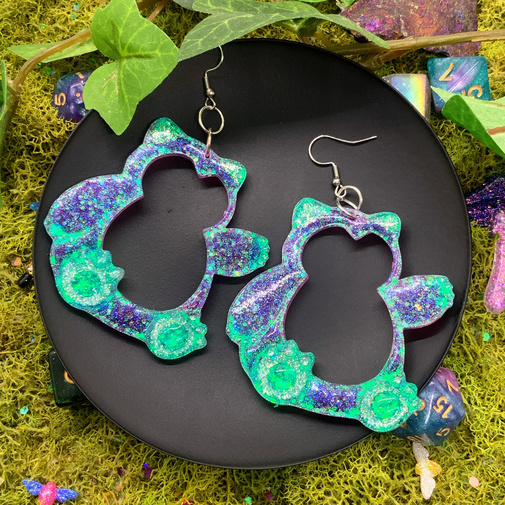 large sized lightweight earrings: shiny inspired snorlax ! hand painted paw pads with uv resin