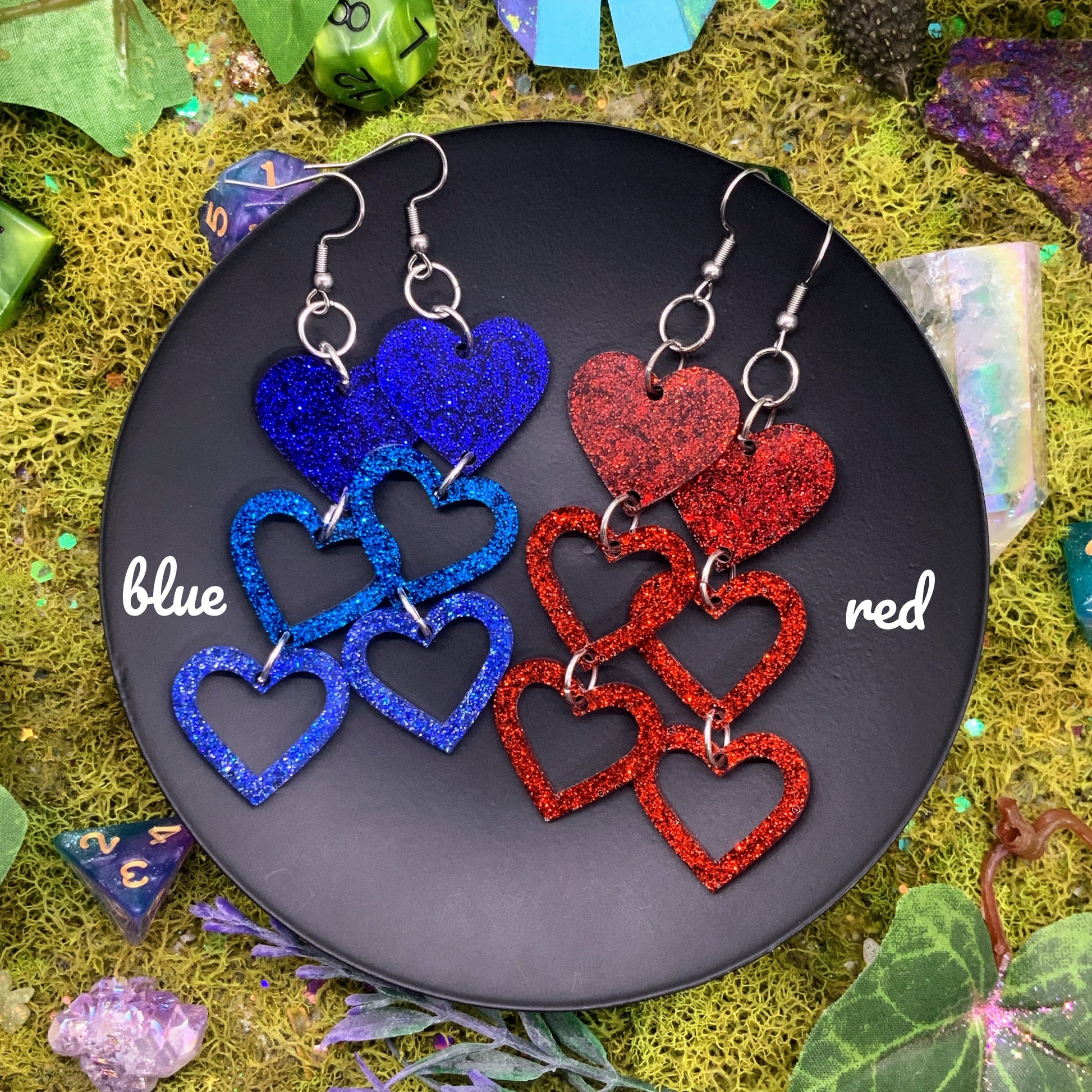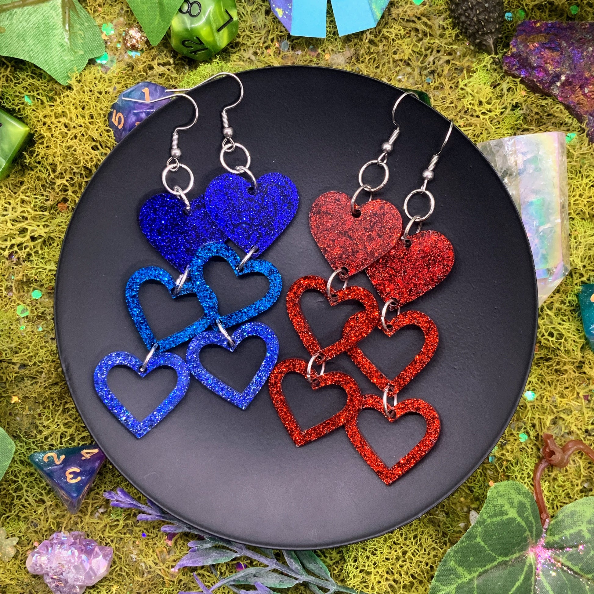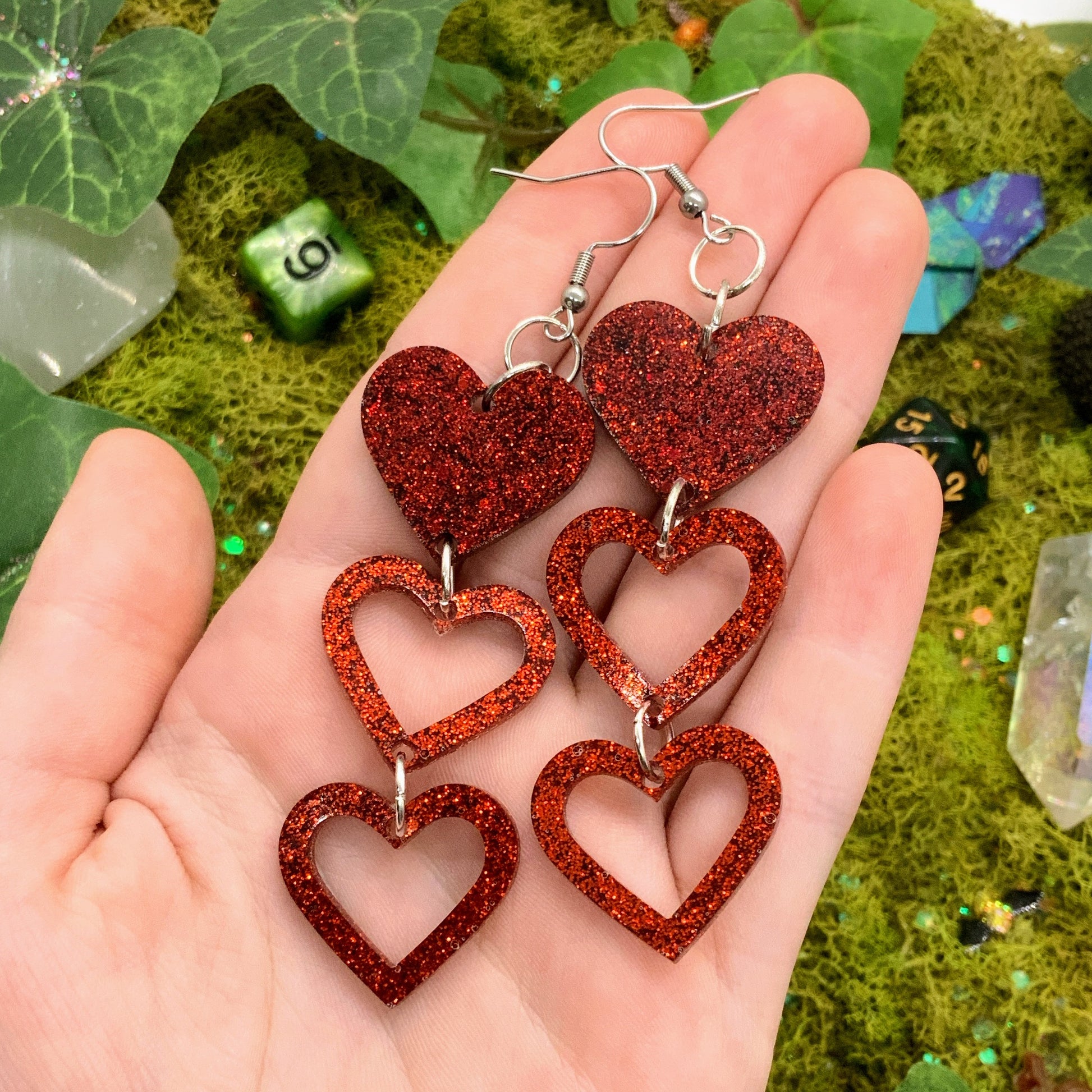 medium sized long lightweight earrings: 3 heart chain, only one life left!
