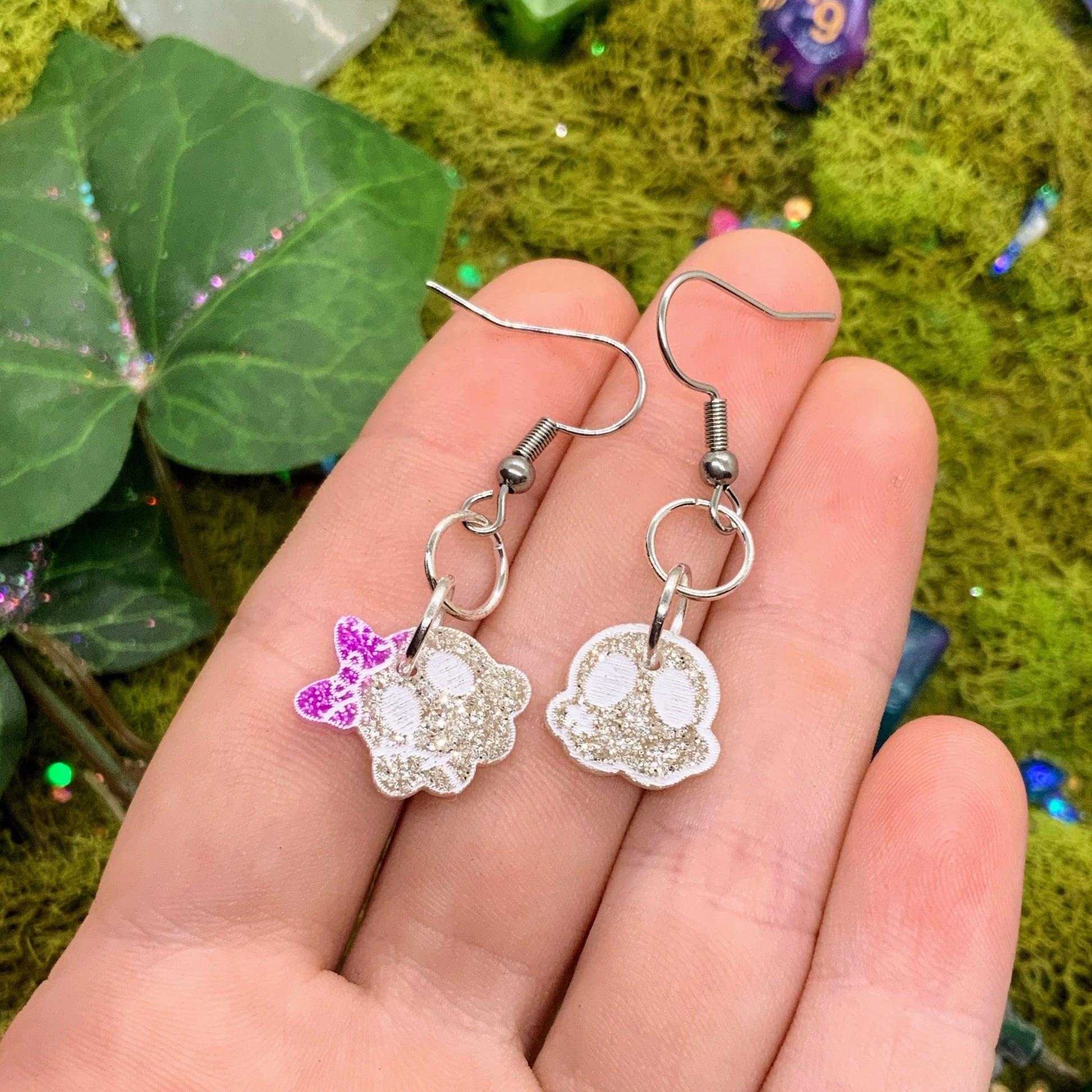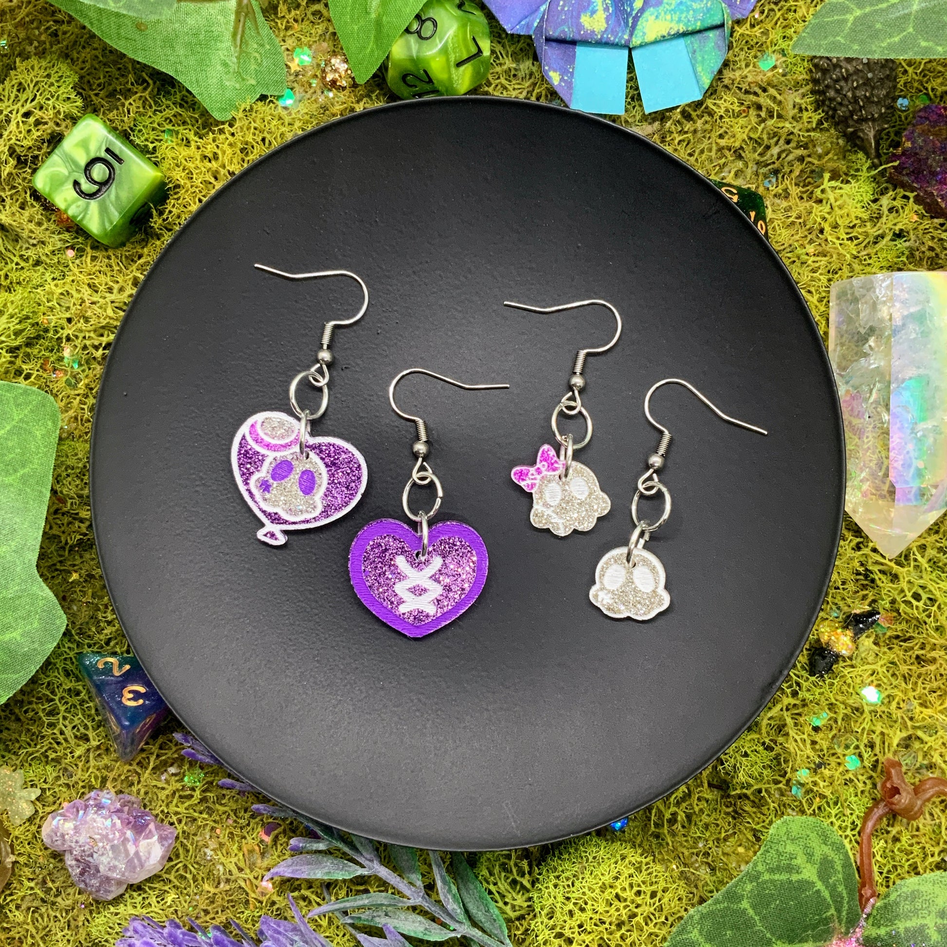 medium sized lightweight earrings: -do us part. couples inspired skull charms!