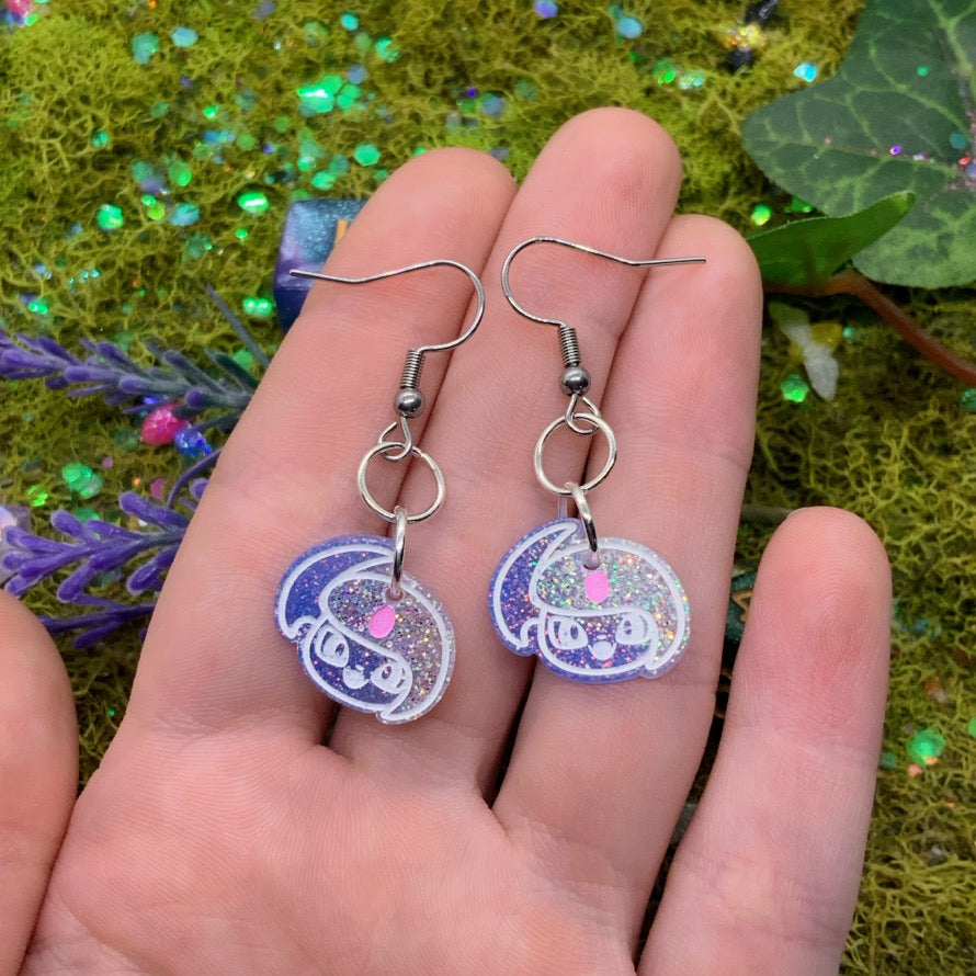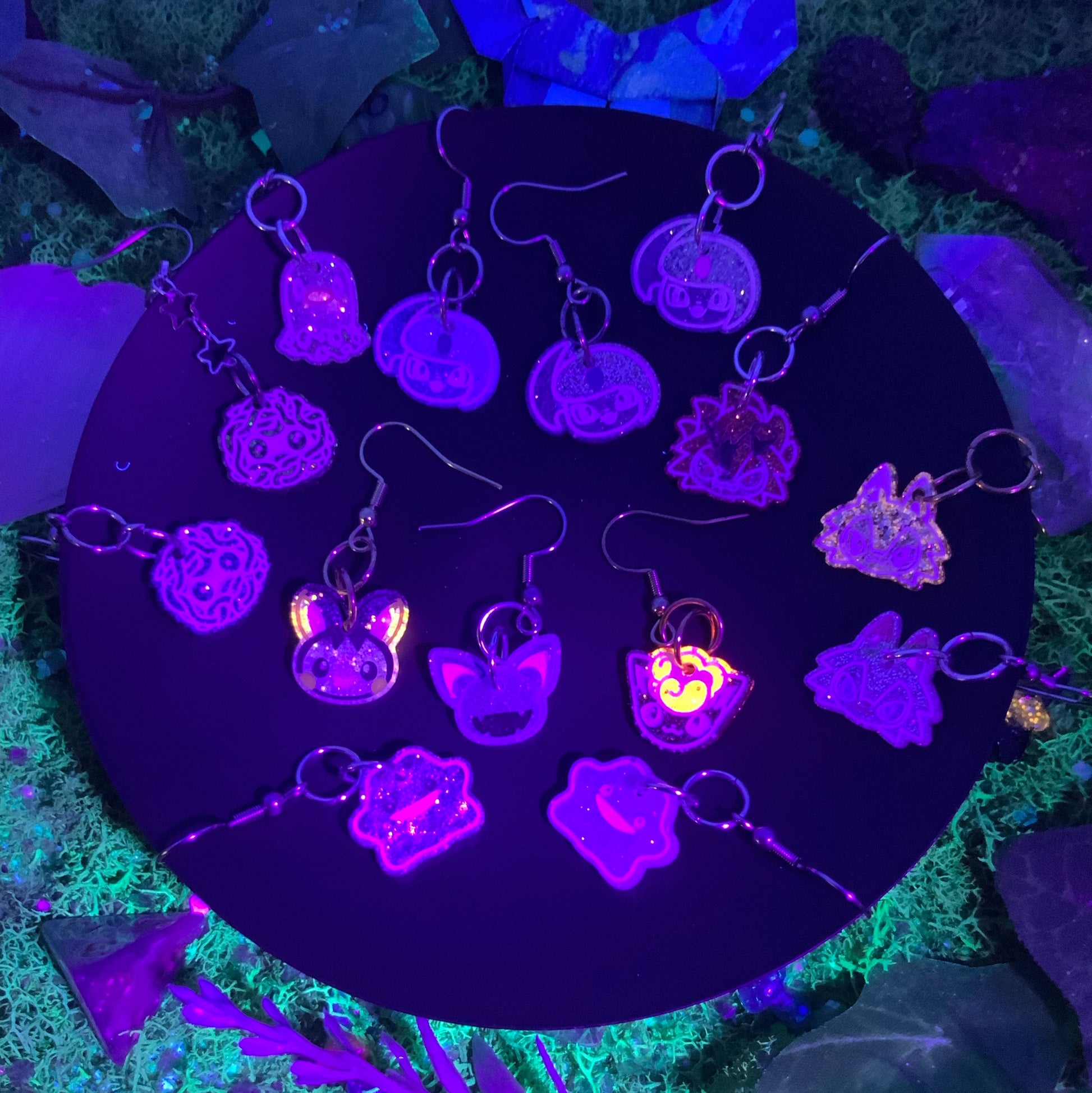 handmade ~ each pair is one-of-a-kind, i glitter and paint all the details! these are not machine made or laser cut, there will occasionally be bubbles or ‘misplaced’ glitter; enjoy the humanity in art! not all pieces will look exactly the same as the picture, glitter can look different irl vs on camera (aka more sparkly, more colors in their shimmers, etc)
