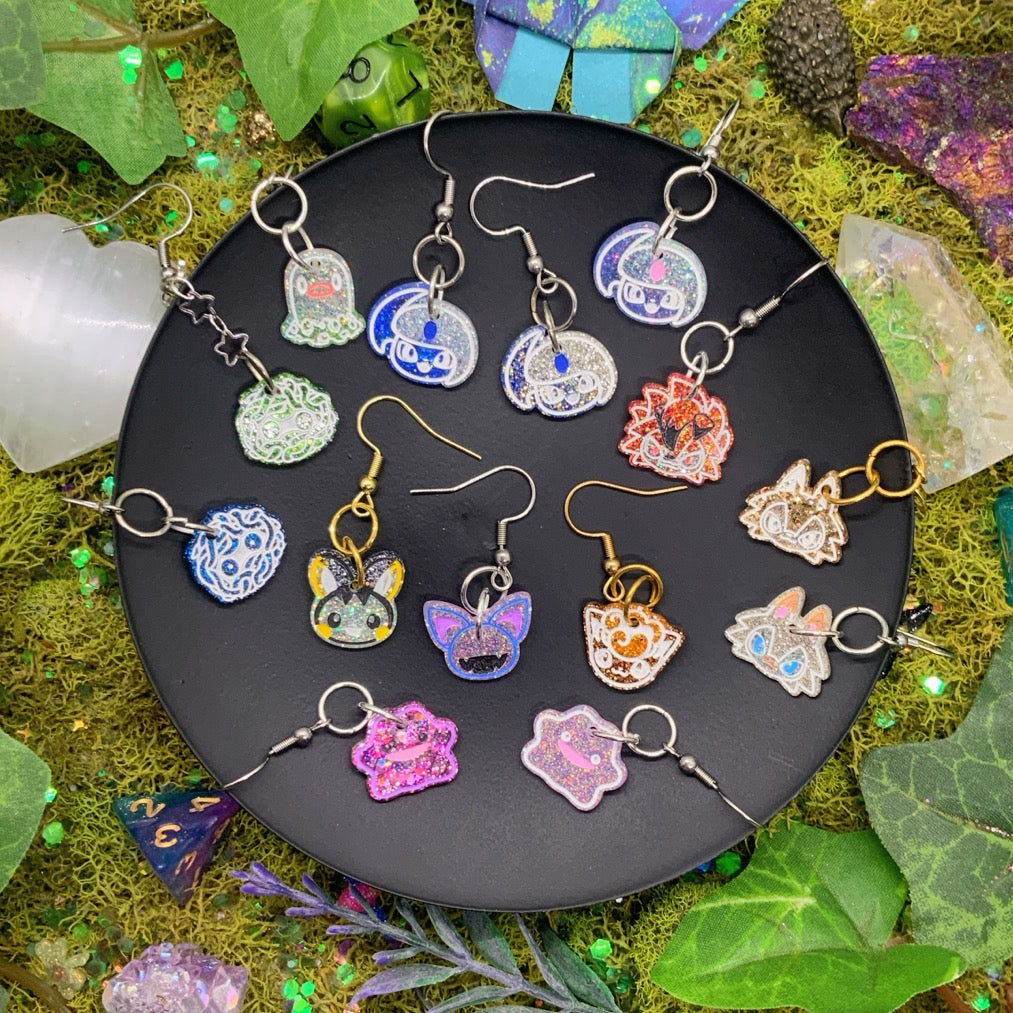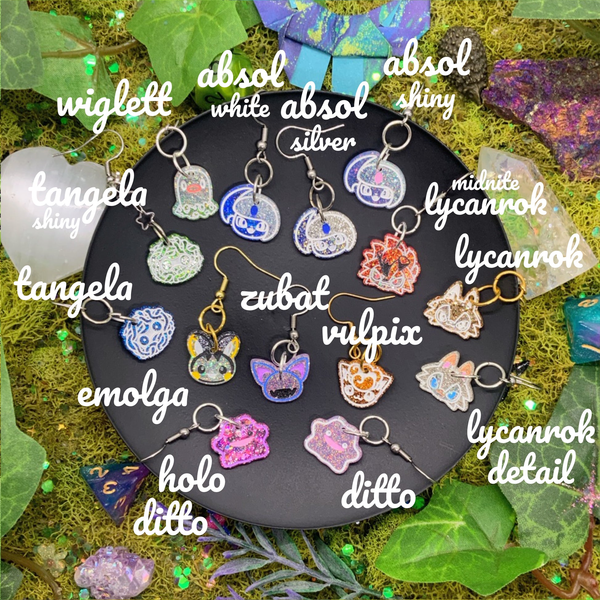 tiny sized lightweight earrings: poké mon of random types and gens! different listings for tiny mythicals, ghost types, & starters!