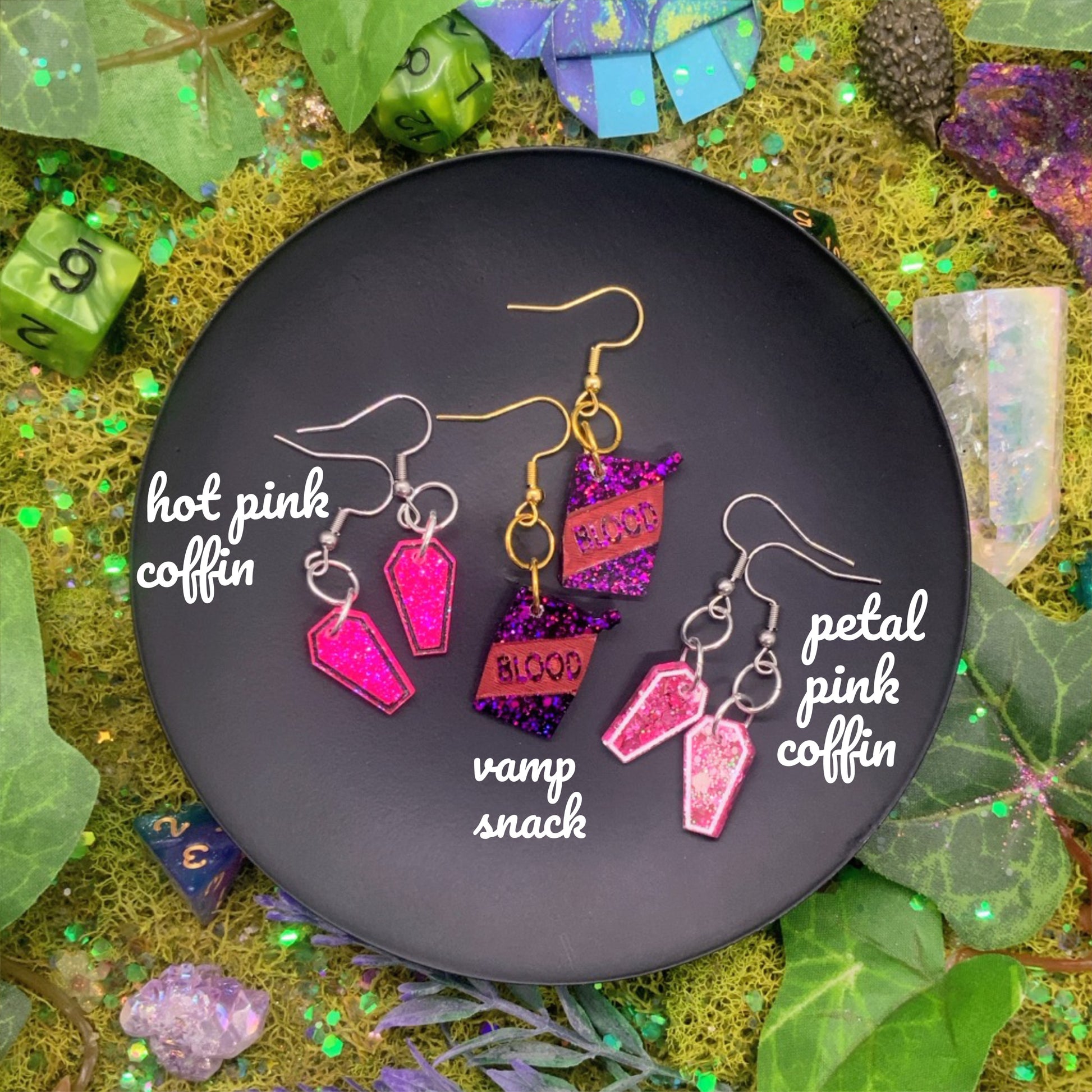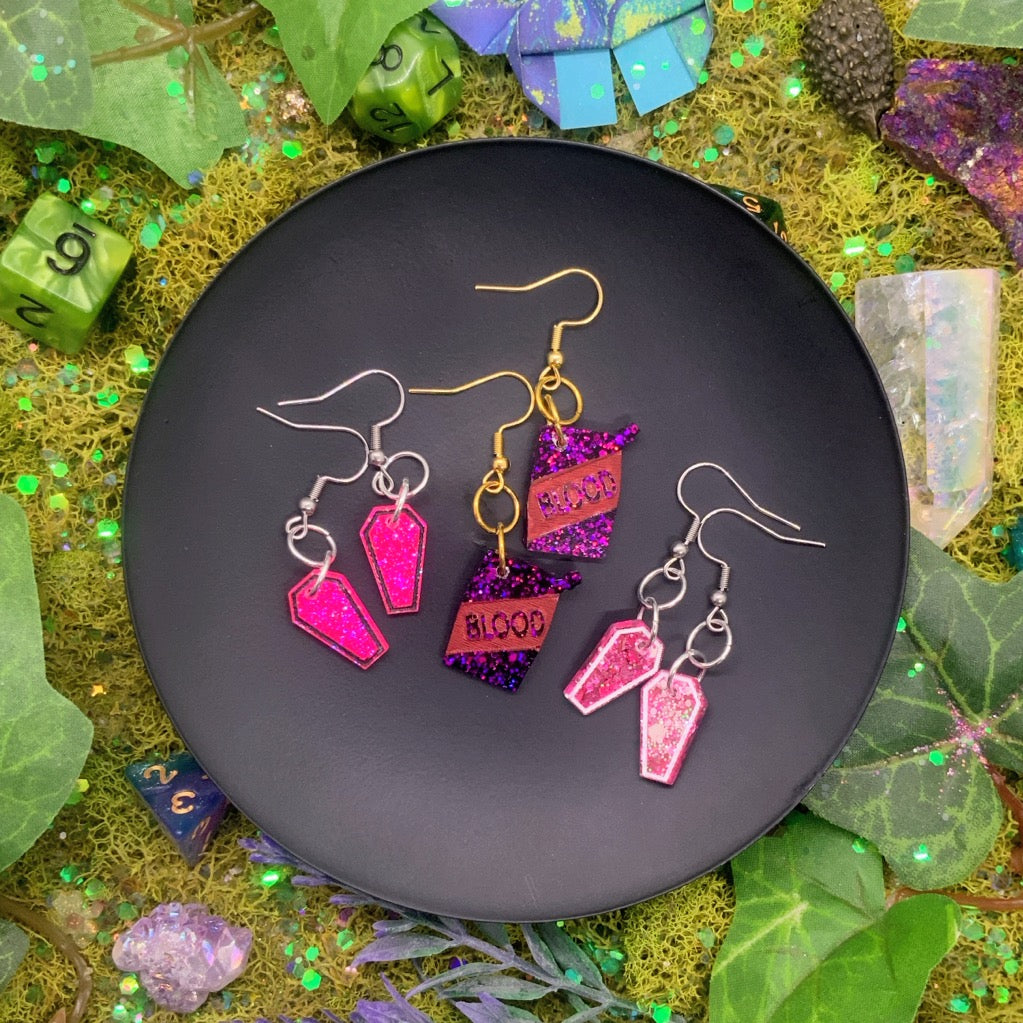 tiny sized lightweight earrings: coffins and all the things a vampire needs!